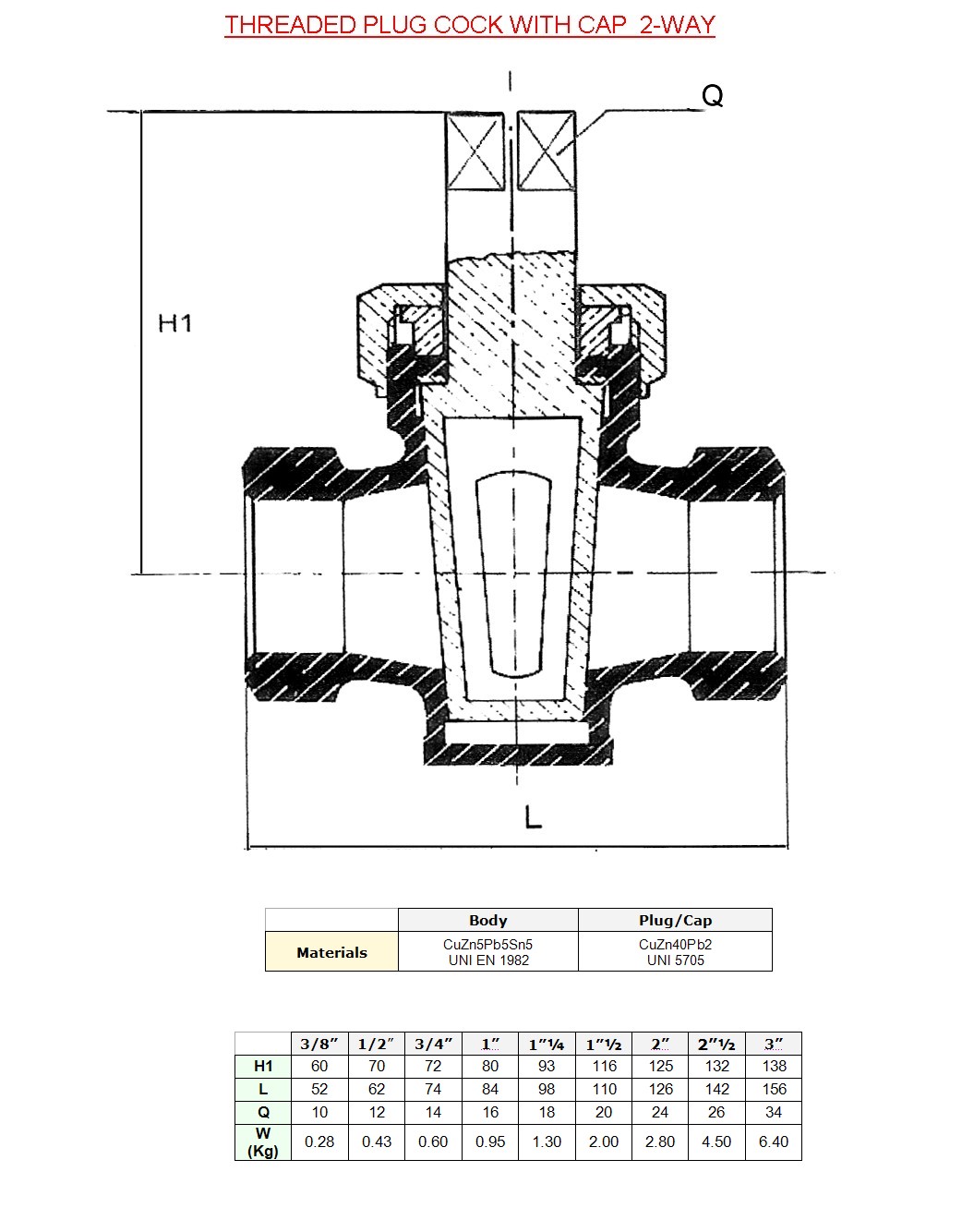 THREADED PLUG COCK WITH CAP 2-WAY