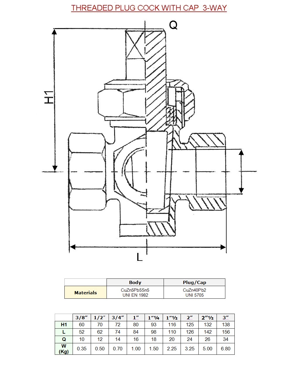 THREADED PLUG COCK WITH CAP 3-WAY