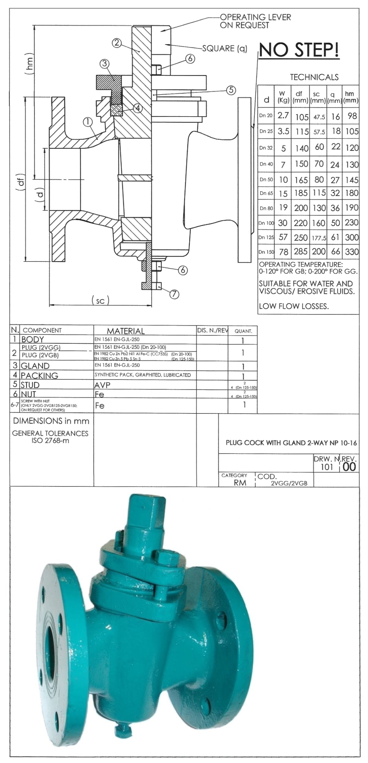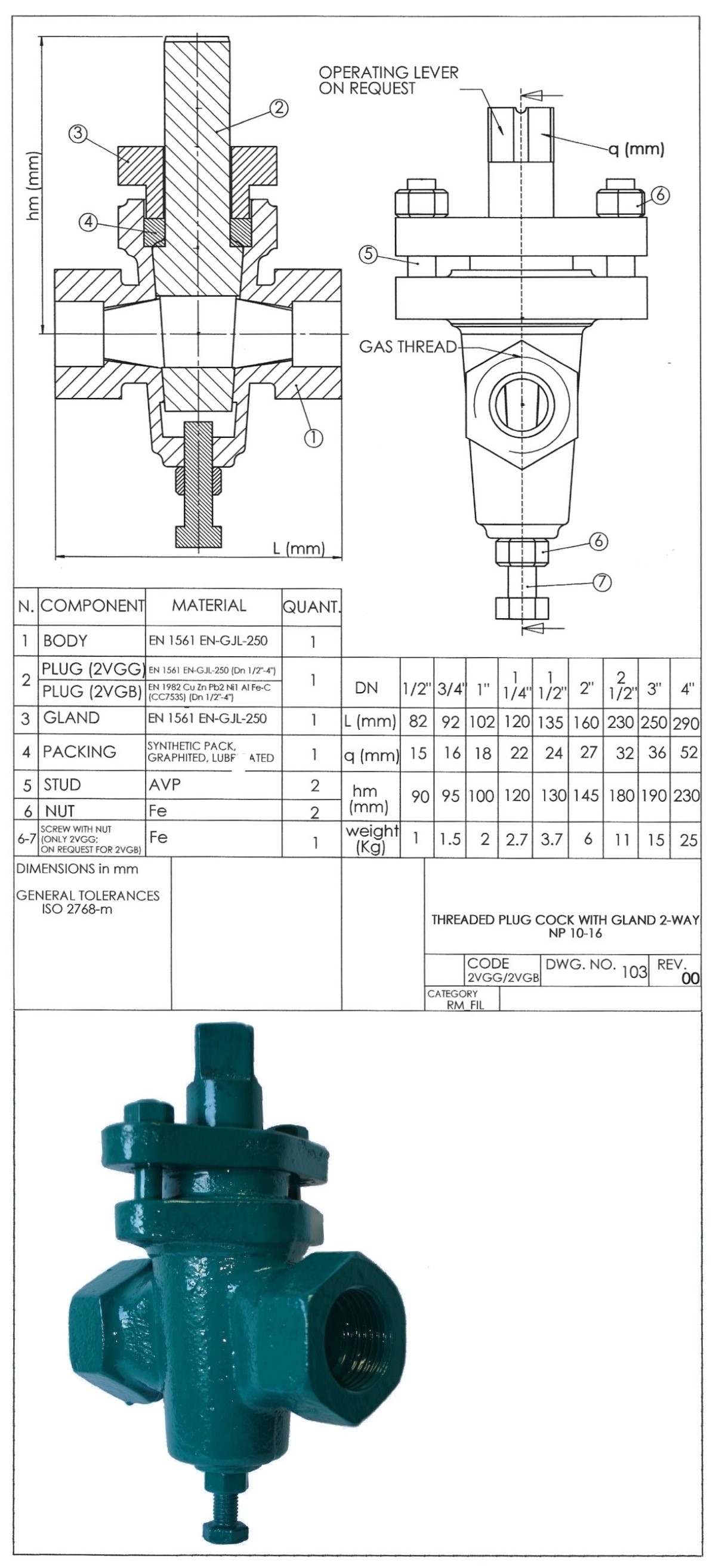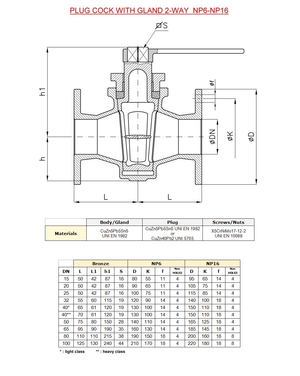 PLUG COCK WITH GLAND 2-WAY NP 10-16